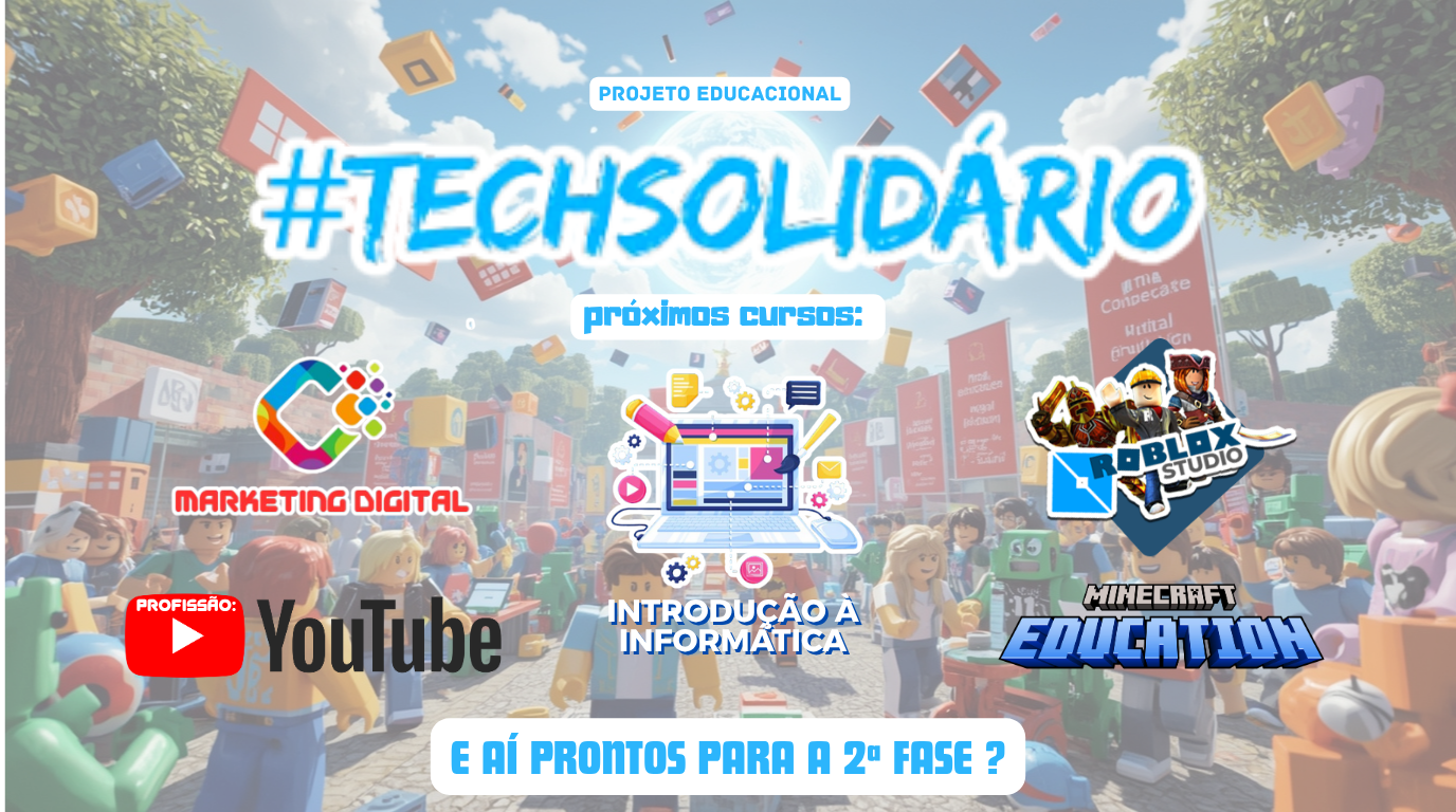 *CURSOS PRESENCIAIS E GRATUITOS DE: MARKETING DIGITAL, INTRODUÇÃO À INFORMÁTICA, ROBLOX STUDIO, PROFISSÃO: YOUTUBE E MINECRAFT EDUCATION